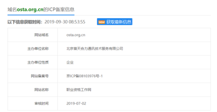 4、人社部职业技能鉴定中心领导下的人社系统证书查询平台,技能人才评价工作网(www.osta.org.cn),ICP备案信息查询显示,其所有权属于民企:北京普天合力通讯技术服务有限公司。